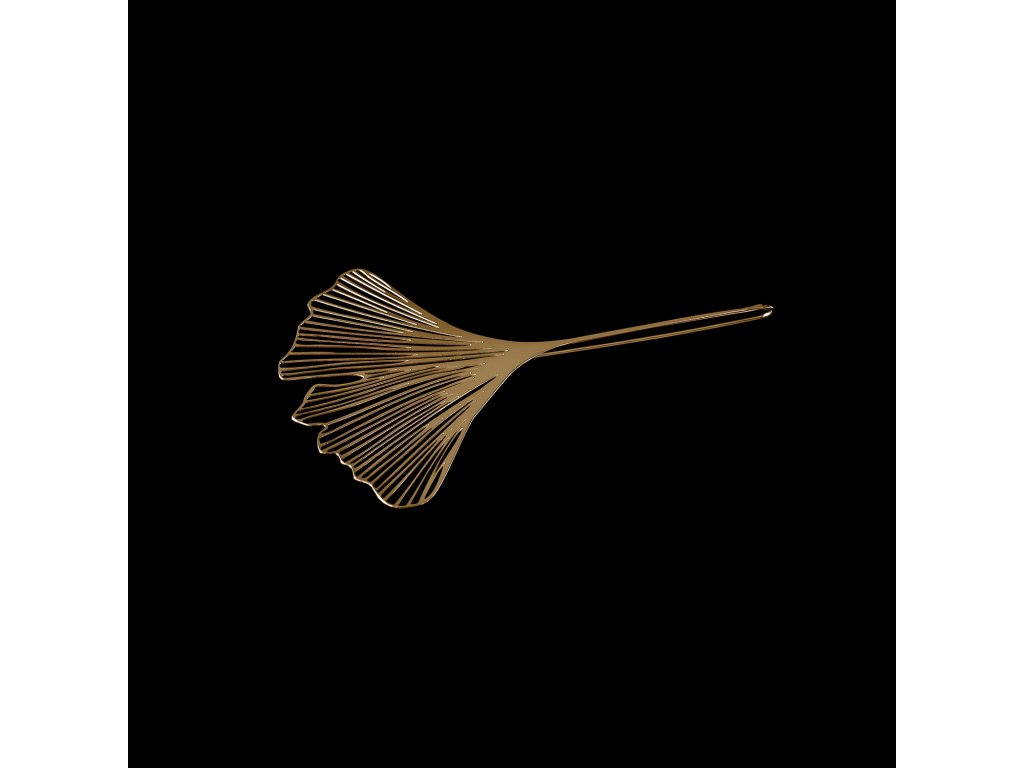 Brož Ginkgo je vyrobena z 0,3 mm plechu nerezové oceli. Jehlice je ručně tvarovaná z chirurgického drátu. Brož je galvanicky pozlacená.Velikost brože: 8 x 5 x 0,7 cm